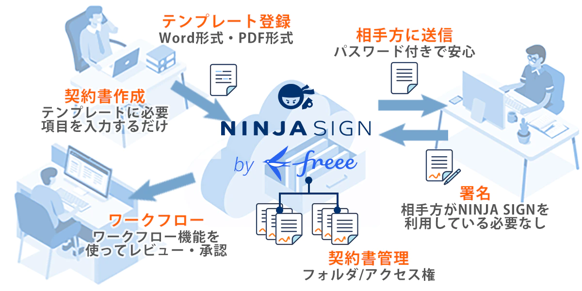 NINJA SIGNは、契約書の作成、締結、管理まで、契約業務の煩雑なプロセスを
